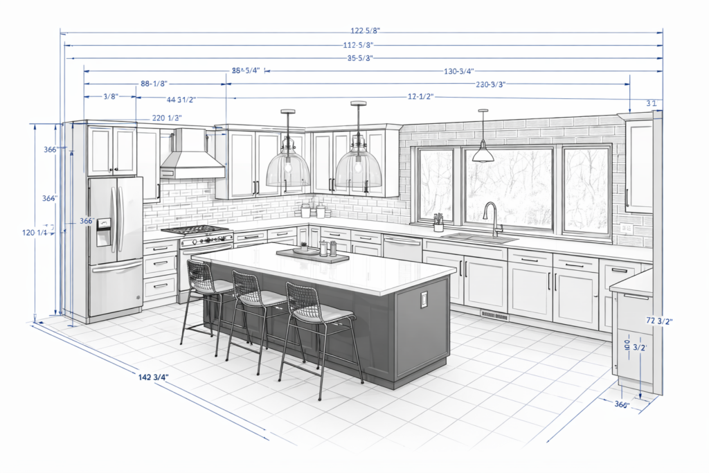 Our new construction design services focus on creating functional, well-thought-out layouts from the beginning. From cabinet placement and appliance spacing to overall flow and usability, every detail is carefully planned.